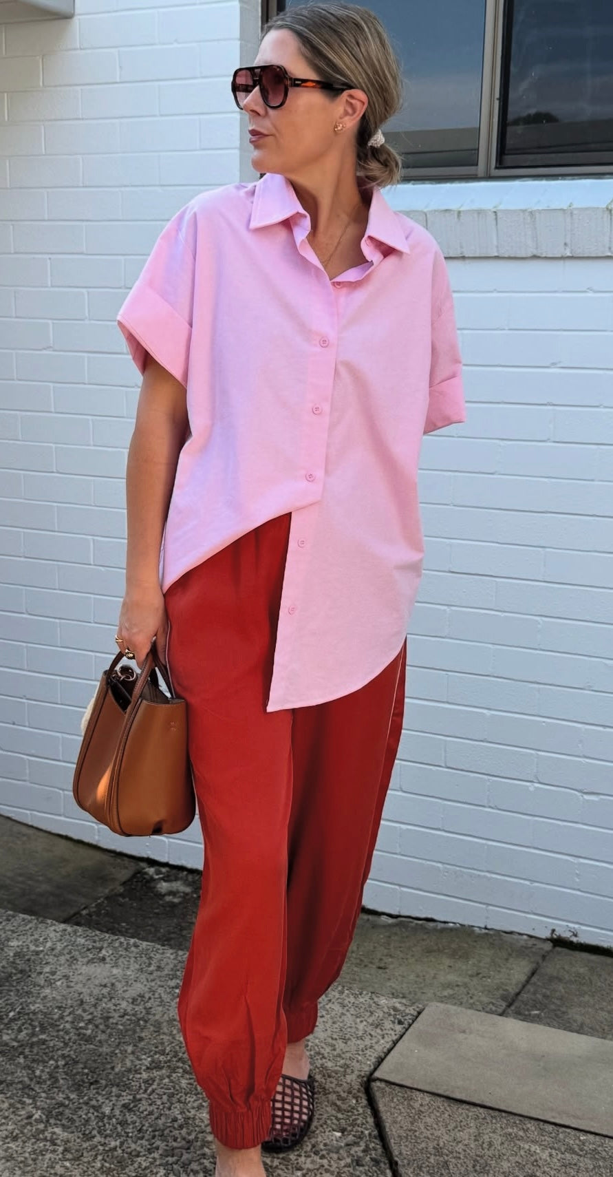 Crafted from 100% Tencel for its breathable softness and fluid drape, this track-style pant features a rich Paprika hue, accented with contrast Lilac piping along the side seams. Deep functional pockets and a softly gathered elastic waistband offer all-day comfort, while the elasticated ankle cuffs create a modern, tapered silhouette.